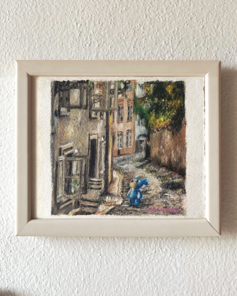 パステル画12x12cm、額装送料込みのお値段です